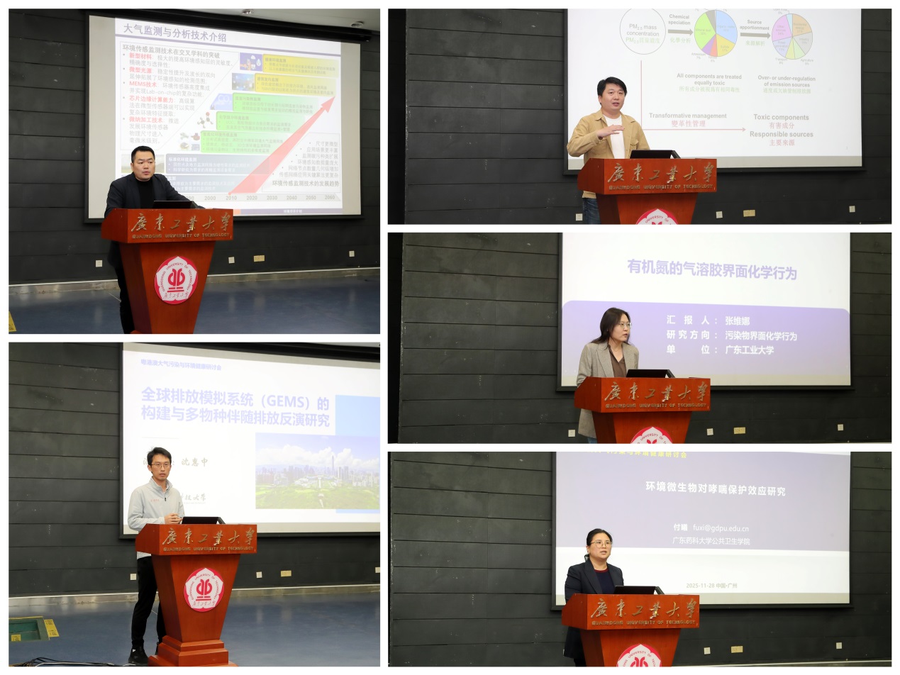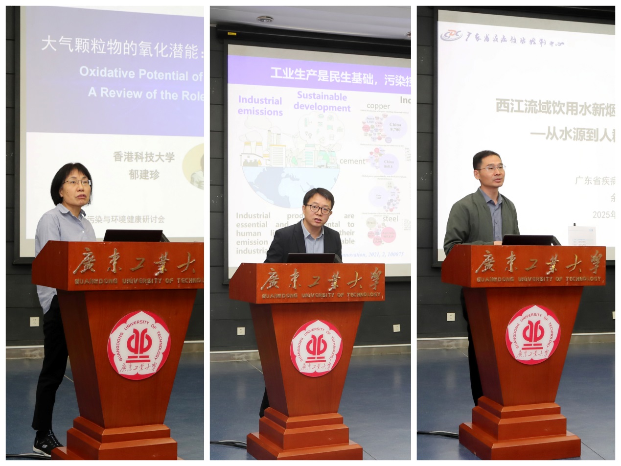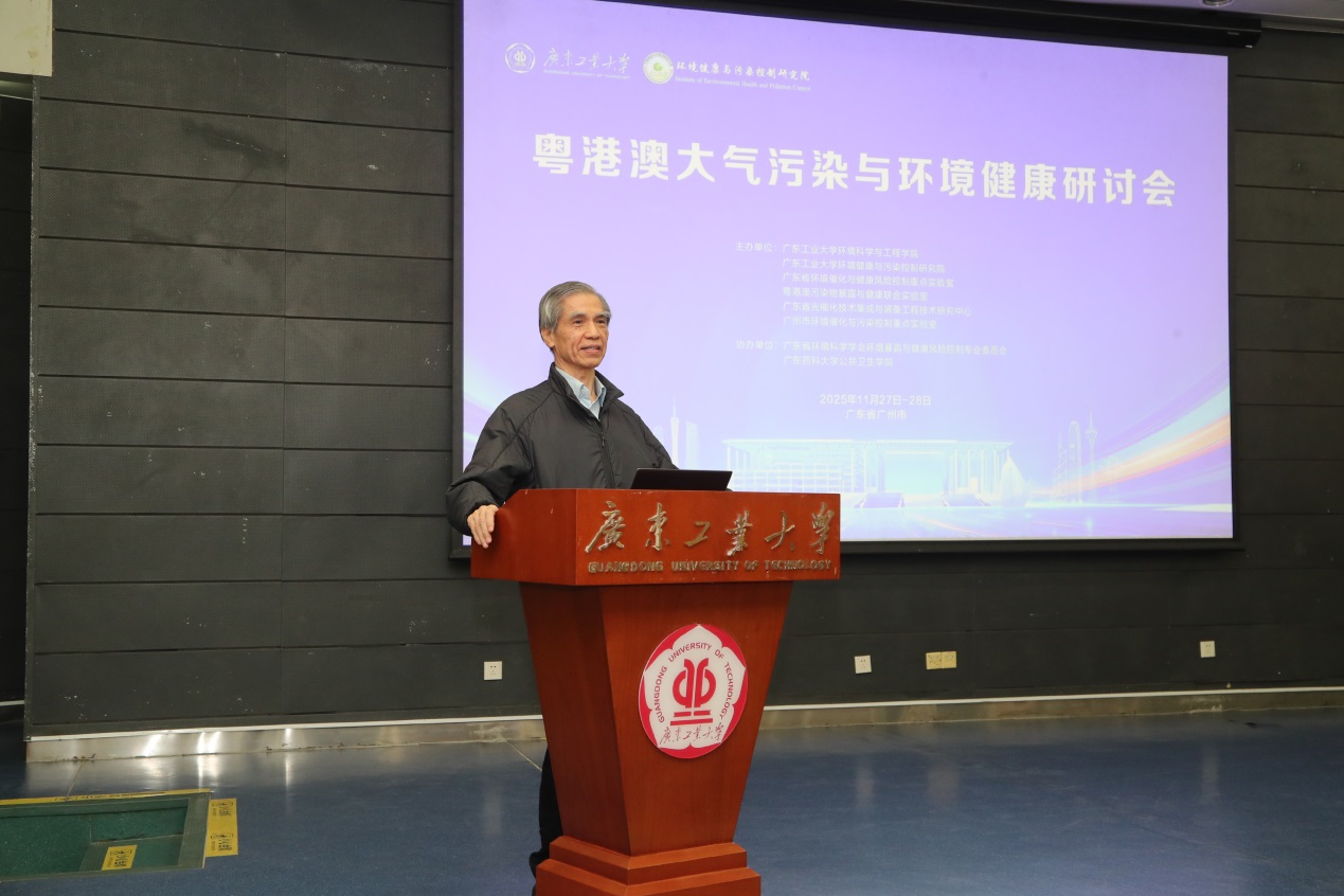 2025年11月28日,粤港澳大气污染与环境健康研讨会在广东工业大学大学城校区大讲堂圆弧报告厅顺利召开。北京大学/南方科技大学陶澍院士、广东工业大学赵惠军院士、香港中文大学王保强教授、香港科技大学郁建珍教授及宁治教授、浙江师范大学刘国瑞教授、香港浸会大学梁士贤教授、北京大学沈国锋研究员、南方科技大学沈惠中研究员、香港理工大学金灵助理教授、广东省疾病预防控制中心龙朝阳所长和余胜兵副所长、广州市疾病预防控制中心袁俊主任和谭磊主任技师、广东药科大学付曦教授、澳门科技大学于希副教授、南方医科大学徐飞飞博士等专家学者以及广东省科技厅实验室与平台基地处彭丹处长、广东省环境科学学会邹耀秘书长出席了本次会议。此外,我校科学研究管理部科技处秦延林副处长,环境科学与工程学院党委书记葛畅、院长/实验室主任安太成教授、副院长/粤港澳联合实验室常务副主任余应新教授、副院长姬越蒙教授、副院长谢武明教授、副院长王玉洁副教授、院长助理/省重点实验室常务副主任陈江耀教授、环工系主任/省重点实验室副主任王万军教授以及实验室骨干成员、学生共200余人参加了会议。