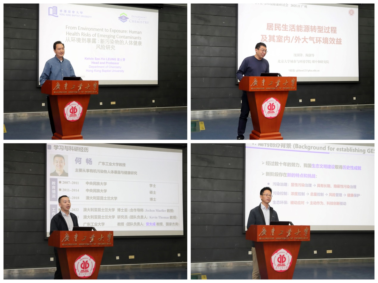 接着,王万军教授主持报告,梁士贤教授、沈国锋研究员、广东工业大学何畅教授及顾建伟教授分别以“从环境到暴露:新污染物的人体健康风险研究”、“居民生活能源转型过程及其室内/外大气环境效益”、“新污染物的人体暴露与区域风险识别”和“Global Environmental Science期刊发展情况介绍”为主题作了精彩的学术报告。