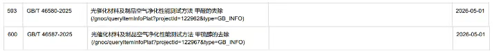 两项国家标准的正式发布,科学解决了此前我国光催化领域行业内测试方法不统一、性能评价难度大的痛点,可广泛应用于平板建材、空气净化滤网等多种光催化产品的净化性能检测,对提升相关行业技术水平、规范市场秩序具有重要意义。